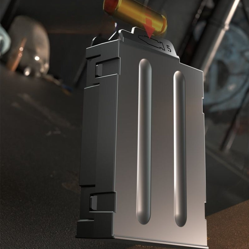 Bottom-feed design ensures smooth and stable ammunition feeding. First, load the soft cartridge case, then the magazine. Five rounds can be loaded at once, allowing for rapid reloading and continuous firing.