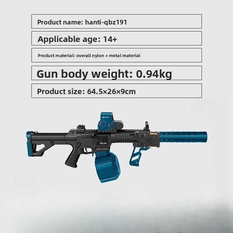 The QBZ191 gel bullet gun offers versatile design, offering both manual and fully automatic firing modes and is compatible with 7-8mm gel bullets.